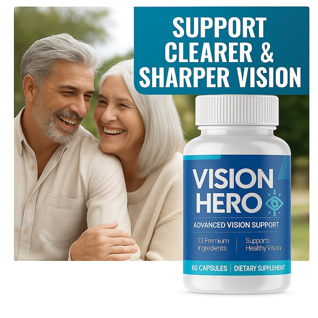 Vision Hero is a breakthrough natural formula designed to support and protect your eye health. Combining premium plant extracts, essential vitamins, and antioxidants, it helps maintain sharp vision, reduce oxidative stress, and nourish the delicate cells of your eyes.